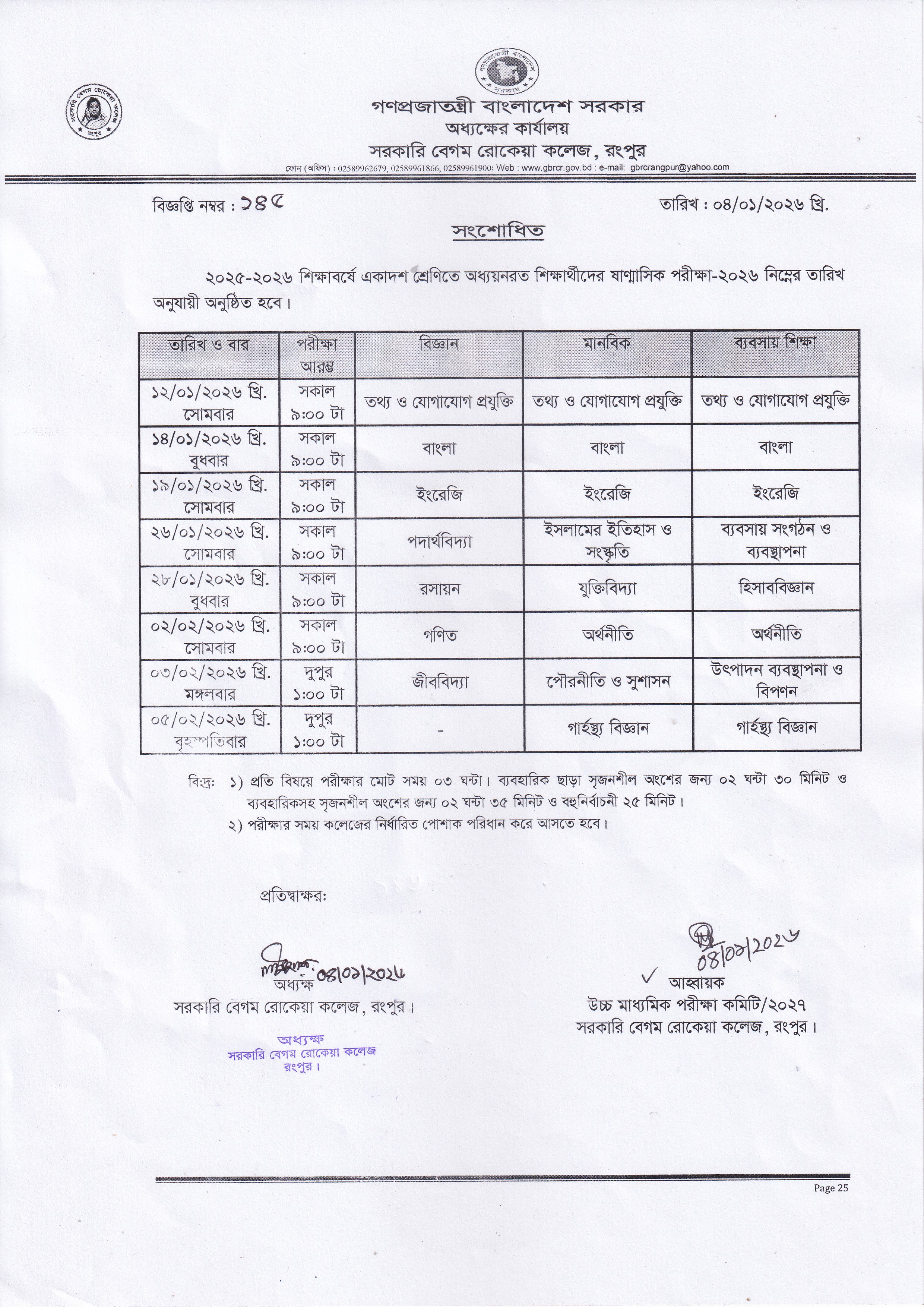 | 14 | একাদশ ষাণ্মাসিক পরীক্ষা-২০২৬ | 04/01/2026 | Download |