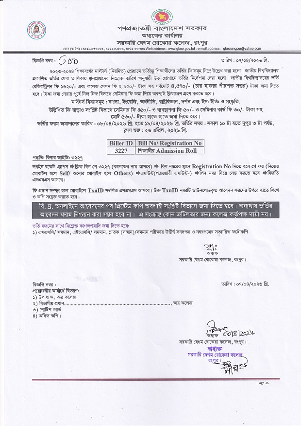 | 16 | মাস্টার্স শেষ পর্ব ভর্তির প্রাথমিক আবেদন ফি | 02/02/2026 | Download |
