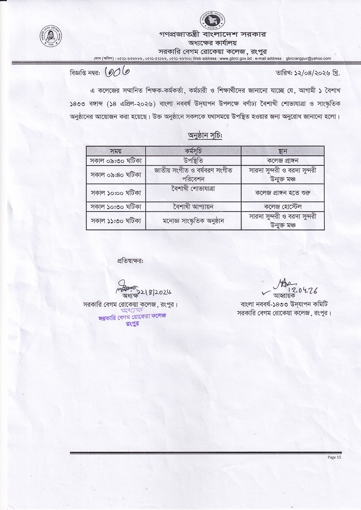 | 2 | বাংলা নববর্ষ-১৪৩৩ | 12/04/2026 | Download |